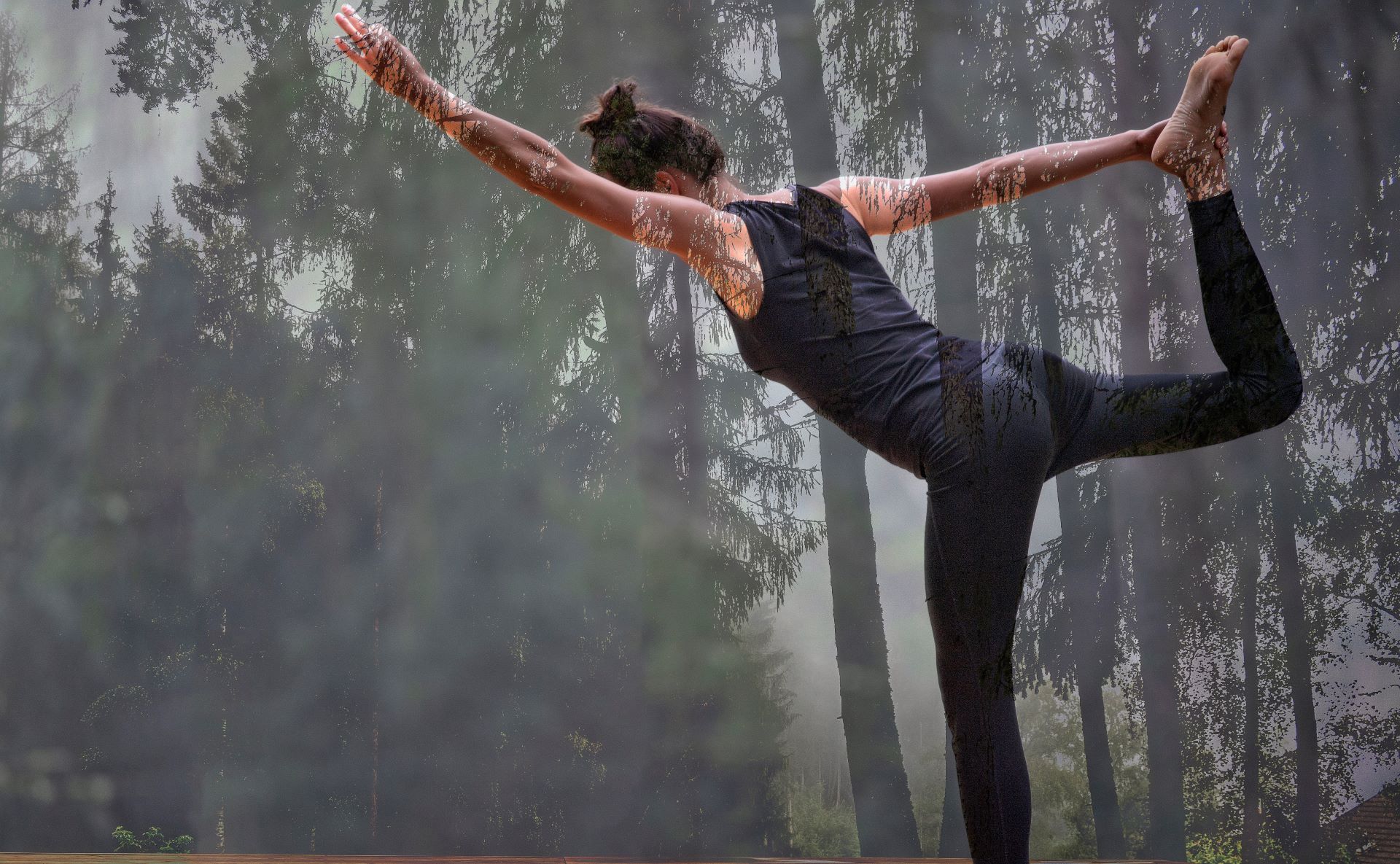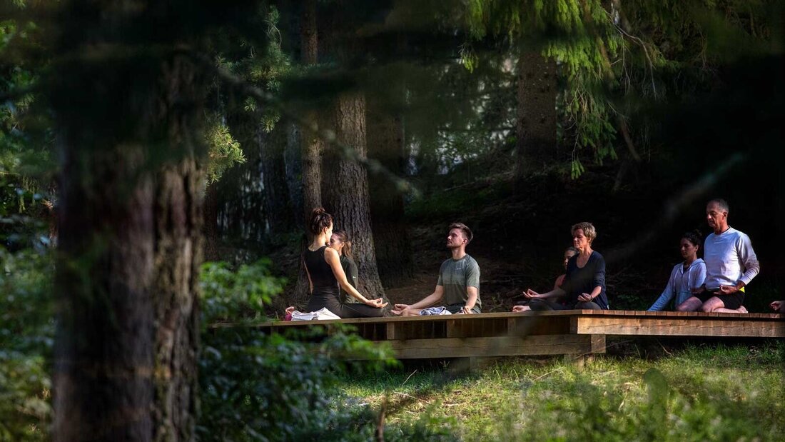 - 2 Yoga- Panoramaräume und Yogaterrasse im Wald und Plattform auf der Wiese
